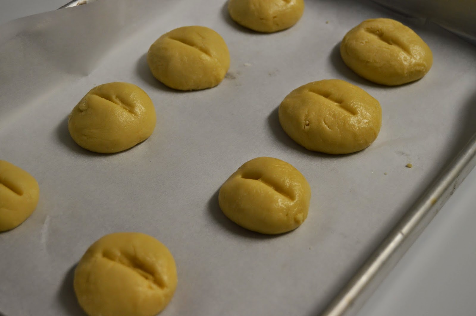 Forme os scones com as mãos envolvidas em farinha. Coloque-os no tabuleiro deixando espaço entre eles porque crescem.